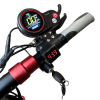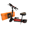 В этом самокате совмещаются мощные небольшие колеса и аккуратное мягкое сидение, красивый руль, который на верхней поверхности имеет бортовой компьютер. Возможные цвета (черный, белый) в сочетании с двумя широкими красными полосами на деке. Небольшие фары выглядят аккуратно и не бросаются в глаза.
