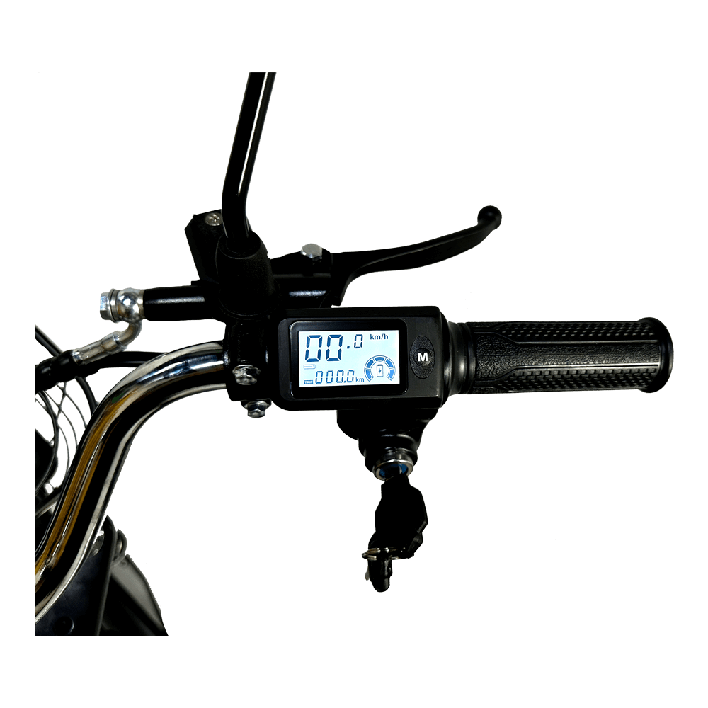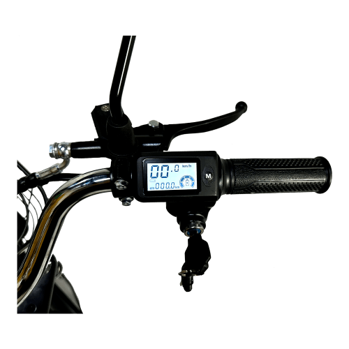 Электровелосипед Kugoo Kirin V3 Pro удобен в управлении – все основные функции расположены на руле под большими пальцами: звуковой сигнал, включение освещения и поворотников, переключения скорости и привода. На большом цветном дисплее отображается скорость, пробег, заряд аккумулятора, также индикаторы включенного освещения и поворотников.