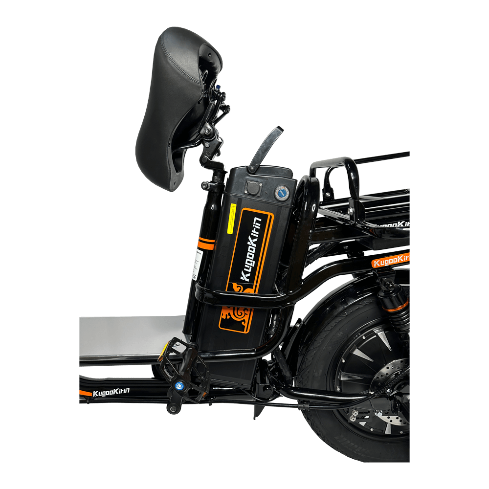 Kugoo V3 Pro — это электровелосипед, который может использоваться в качестве средства доставки. Он имеет максимальную скорость 55 км/ч и запас хода до 60 км. Грузоподъемность составляет 150 кг, что достаточно для большинства курьеров. Степень защиты IP54 означает, что велосипед устойчив к брызгам воды. Вес устройства составляет 40 кг, что позволяет сохранять устойчивость на дороге. Электровелосипед Kugoo Kirin V3 Pro предназначен для городского и поселкового передвижения и предлагает своему пользователю уникальное решение — перевозка райдера вместе с пассажиром. На задней части устройства расположено дополнительное сиденье предназначенное для перевозки пасажира, либо груза.