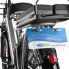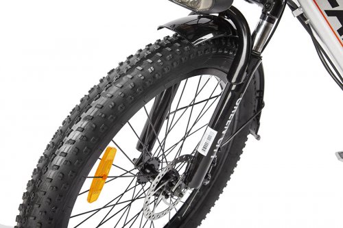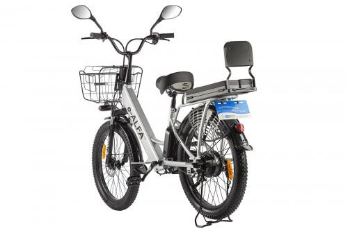 Дополнительную надежность придадут тормоза: спереди дисковый, сзади — барабанный, которые выручат в случае экстренного торможения, даже если вы едете на максимальной скорости 37 км/ч. Вы также можете не переживать за сохранность e-Alfa Fat, например, отправляясь за покупками в магазин: установленная противоугонная система в положении «Стоянка» заблокирует колесо, и передвижение фэтбайка станет невозможным.